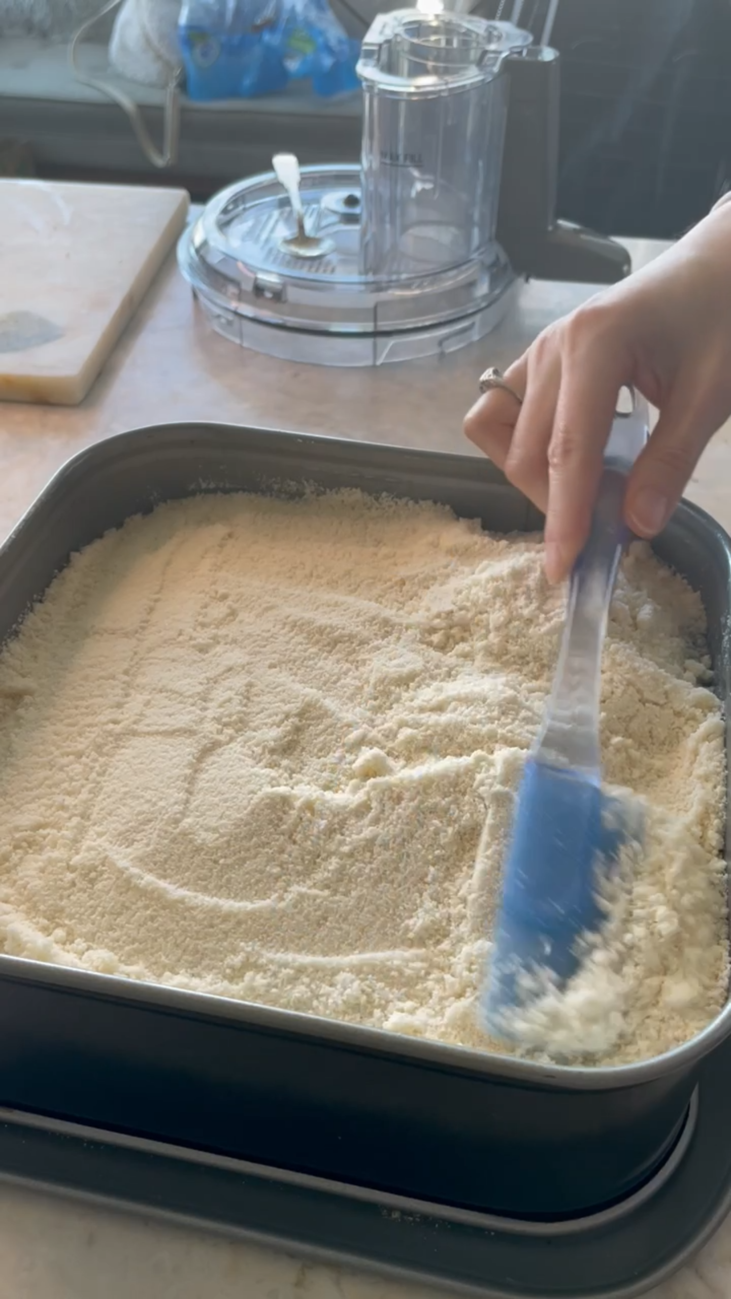 Make the Dough/Crumble:Â In a food processor, pulse the flour, sugar, and salt. Add the cold, cubed butter. Pulse until the mixture looks like coarse, wet sand. Do not overmix into a ball.